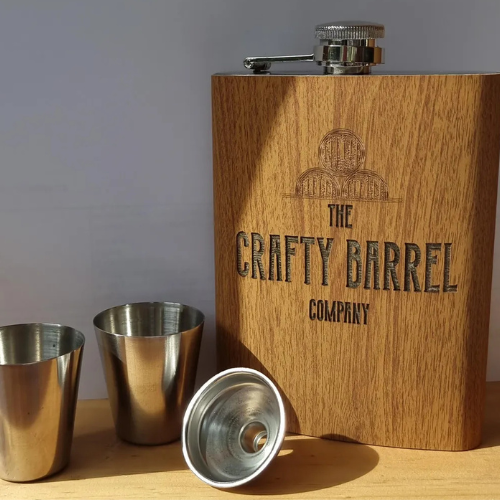 This beautifully presented 8oz stainless steel hip flask gift set is wrapped in a smooth, tactile faux leather for a premium feel. The set includes two matching stainless steel shot cups and a convenient funnel for easy filling.